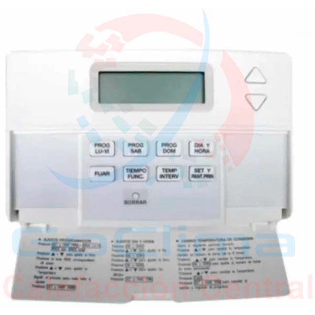 Termostato con programación semanal que ofrece la opción de establecer el nivel de confort por diferentes programas de configuración.